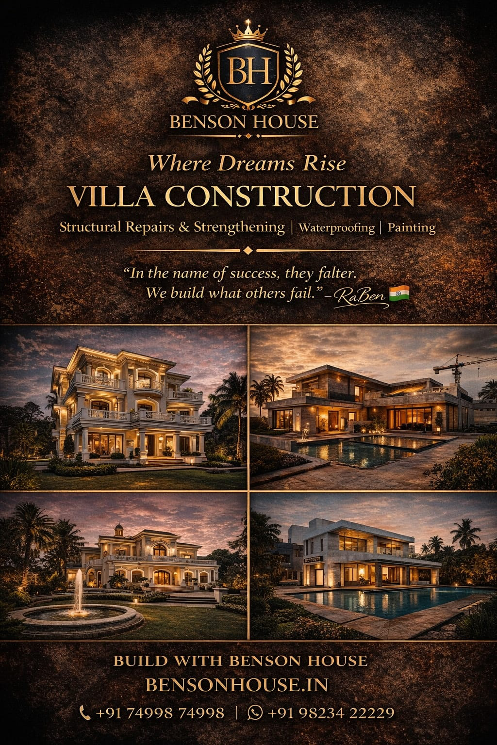 Every work at BENSON HOUSE has Engineering concept and optimum design. We are not just a contractor .We add Engineering value at optimum price.